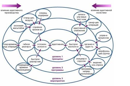 На рисунке 4 предлагается трехуровневая фигура, обобщающая наше видение адаптивной логистической системы.