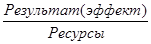 Эффективность сложная экономическая категория, которая складывается на предприятии (в отрасли и т.п.) под влиянием множества внутренних и внешних факторов: экономических, правовых, социальных и других. Это обстоятельство и тот факт, что эффективность представлена в различных видах (эффективность хозяйственной деятельности предприятия, эффективность использования различных ресурсов, эффективность производства), являются причинами использования множества показателей для её оценки. Основополагающим принципом формирования системы показателей эффективности и выражение её сущности является соотношение конечного результата и эффекта с применёнными и потреблёнными ресурсами. [1]