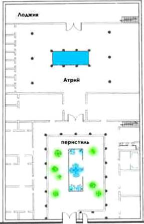 – внутренний сад, окруженный колоннадой. В таких садиках, как правило, выращивали травы и цветы – розы, фиалки, лилии - оформляя интерьер статуями и статуэтками. В солнечные, не слишком жаркие дни, перистиль использовался как летняя столовая (рис.1).