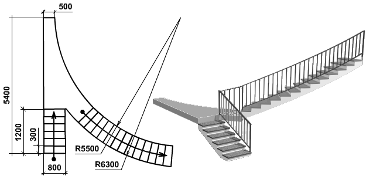 Верхней частью лестничный марш опирается на две колонны диаметром 400 мм.