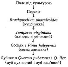 Проходження сингенетичної й ендоекогенетичної сукцесії показано на прикладі спонтанної клімаксової формації дуба у французькому Середземномор'ї: