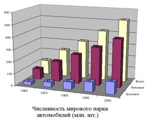 У глобальному балансі забруднення атмосфери частка автотранспорту складає 13,3%, але в містах вона зростає до 80%. У світі близько 600 млн. автомобілів (а в Китаї й Індії – 600 млн. велосипедів). У США автомобіль є в кожного другого жителя, а в Африці на 1000 чоловік відводиться 9 автомобілів, в Індії – 2, у Китаї – 2, у Росії – 79.