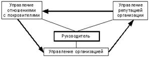 В рыночных условиях главной особенностью маркетинга в сфере культуры является соединение трех его направлений. Кроме привлечения потенциальных потребителей можно выделить управление отношениями с покровителями, создание репутации и системы внутреннего менеджмента учреждения. Английский экономист Брадфорд составил схему, описывающую маркетинговую деятельность музеев, которая справедлива и для других культурных организаций (рис. 1).