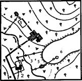 Ситуационный план: 1 -рудник; 2 - обогатительная фабрика; 3 - пульповод; 4 – очистные сооружения шахтных вод; 5 - очистные сооружения сточных вод водообогатительной фабрики; 6 - отстойник; 7 – поселок