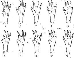 Рис. 2. Порядок ампутации пальцев у грызунов для целей мечения.