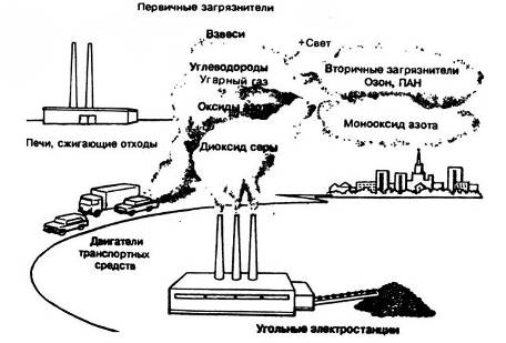 Рис.1. Загрязнение атмосферы выбросами промышленных предприятий