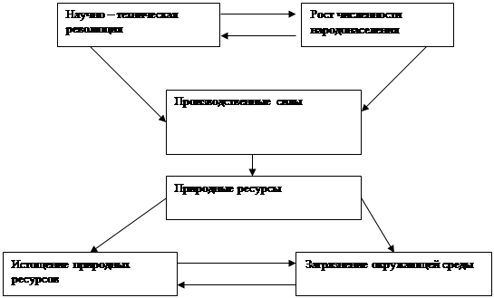 Трансформируясь сквозь сложную призму социально – экономических отношений, эти факторы определяют уровень развития производственных сил, от которого в свою очередь, зависят степень воздействия человеческого общества на природные ресурсы, интенсивность их количественного и качественного истощения и загрязнение сферы обитания человека промышленными, сельскохозяйственными и коммунально-бытовыми отходами. Важнейшим элементом этого много факторного процесса являются производственные силы: не только орудия и средства производства и новые технологии, созданные в эпоху НТР, но и люди, управляющие ими. Производительные силы – это активный фактор, стимулирующий развития общественного производства.