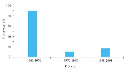 На даний час унікальне Сиваське родовище мінеральних солей приходить в занепад, із-за діяльності гігантів хімічного виробництва. Рівень промислового забруднення ряду територій Західного Присивашшя – катастрофічний.Забруднення проникло і в експлуатаційні горизонти підземних вод. Зокрема, зареєстровані підвищення рівня свинцю, кадмію, марганцю, цинку. Проникає в підземні водні горизонти, котрі використовують для питних цілей, токсичні речовини погіршують якість пітної води, роблячи її малопридатною або навіть непридатною для споживання. Окрім токсикантів небезпеку складає і бактеріальне забруднення поверхневих та підземних вод, у результаті чого виникає загроза шлунково-кишкових та інших захворювань.Вплив зрошення. З 1964 р. у Криму почалася експлуатація однієї із найбільших в Європі зрошувальних систем – система Північно-Кримського каналу. Цей канал, довжина котрого складає 400 км, є основним джерелом водопостачання Криму [12]. Будівництво ішло в три етапи: перший з 1961 р. по 1975 р., другий з 1977 р. по 1986 р., третій в 1986 р., але через скорочення фінансування залишилося незакінченим. Після розпаду Радянського Союзу кількість води, що проходить по каналу, зменшилась майже в 5 разів (рис. 2.1). По даним Державного комітету водного господарства України за 2008 рік по каналу було доставлено 1200 млн. м³ дніпровської води, котра використовувалася для сільського господарства (83 %), комунального господарства (9,6 %), риболовства (3,8 %) та промисловості (3 %)[52].