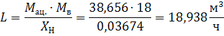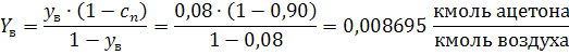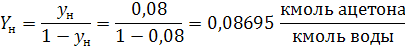 /ч) с концентрацией ацетона 8 (%, объемн.), степень улавливания составляет 90 (%). Концентрация ацетона в воде на входе в абсорбер Хн