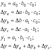 , -промежуточные изменениярезультирующего показателя, связанного с изменением факторов а, b, соответственно.