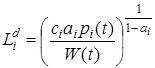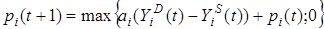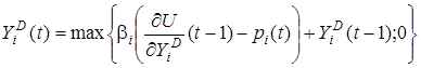 3. Споживач визначає попит на -й продукт у такий спосіб. Якщо на -й продукт попиту немає або гранична корисність споживача менша за граничні витрати, то споживач залишає величину попиту без змін. У протилежному випадку він коректує обсяг попиту на -й продукт за формулою