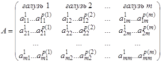 Позначимо кількість ресурсу -го типу й об'єму роботи, необхідних для виробництва одиниці продукції виду в галузі за допомогою технології , відповідно як