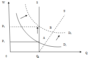 На рисунке 1 показана ситуация, при которой, на рынке земли имеется единственное предложение некоторого объема участка земли Qs, которое востребуется по цене Р1