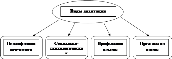 Виды адаптации персонала – это составные элементы общего процесса трудовой адаптации, определяемые особенностями производственно-экономической системы и социальных отношений в организации. (рис. 1)