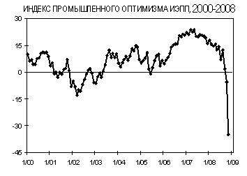 Российский индекс промышленного оптимизма, который рассчитывается на основе опроса руководителей предприятий и бизнесменов, в конце 2008 года стал скорее индексом пессимизма. В ноябре 2008 года настроение российских предприятий стало резко проваливаться в минус: падают объемы заказов, затовариваются склады, объемы производства снижаются, а денег от государства все нет.
