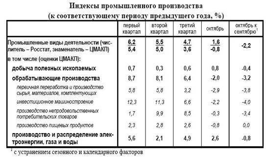 К сожалению, данные Росстата тоже не отличаются большим оптимизмом. Прирост промышленного производства в России в период с января по октябрь 2008 по сравнению с аналогичным периодом 2007 года составил 4,9%. При этом прирост индекса промпроизводства в октябре 2008 года по сравнению с октябрем 2007 года составил всего лишь 0,6%, по сравнению с сентябрем 2008 года – 2,8%. Это один из худших показателей в 2008 году.