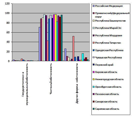Диаграмма 1 – Распределение оборота оптовой торговли организаций оптовой торговли по формам собственности в субъектах Российской Федерации в 2009 г.