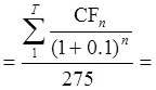 NPV1 = 183,75 * 0,751 + 248,75 * 0,683 + 208,75 * 0,621+ 288,75 * 0,564 – 70,00 – 85,00 * 0,909 – 120,00 * 0,826 = 353,99 руб./руб.