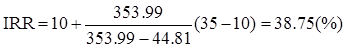 NPV2 = 183,75 * 0,406 + 248,75 * 0,301 + 208,75 * 0,223 + 288,75 * 0,165 – 70,00 – 85,00 * 0,741 – 120,00 * 0,549 = 44,81(руб./руб.)