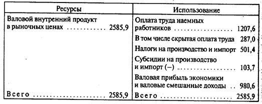 Счет образования доходов и счет распределения первичных доходов отражают выплату доходов экономическим агентам - домашним хозяйствам, нефинансовым и финансовым предприятиям, государственным учреждениям и некоммерческим организациям. Так как в статистике эти доходы не всегда можно разграничить, то в указанных счетах выделяют оплату труда наемных работников, валовую прибыль и валовые смешанные доходы, а также налоги на производство и импорт (т.е. не только косвенные, но и прямые налоги, кроме налогов на прибыль и доходы) за вычетом субсидий на это производство и импорт. На базе этих счетов возможно построение валового внутреннего продукта по доходам, а также национального дохода.