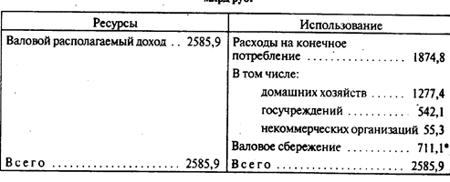 Таблица. СНС России: счет использования располагаемого дохода в 1997 г., млрд руб.