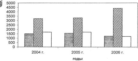 моложе трудоспособного трудоспособном старше трудоспособногоРис. 1. Динамика возрастной структуры населения Елыкаевской сельской территории за 2004-2006 гг.
