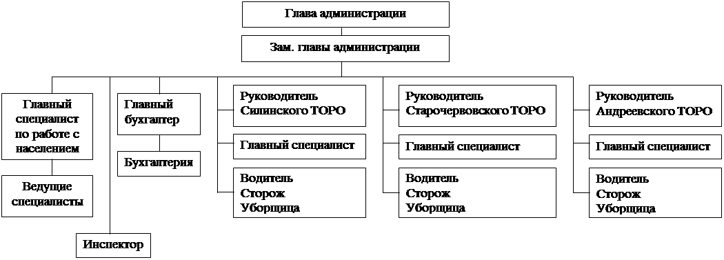 Организационная структура МО «Елыкаевская сельская территория» представлена в приложении 2. «Елыкаевская сельская территория» имеет линейно-функциональную структуру управления.