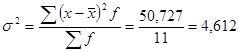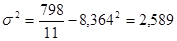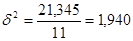 Теперь вычислим общую дисперсию выработки изделий на основе индивидуальных данных примера 2.2 по формуле (13)