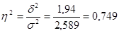 Величина коэффициента детерминации говорит о том, что вариация выработки изделий на 74,9% зависит от вариации производственного стажа работников и на 25,1% от прочих признаков.