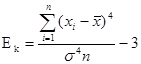 Для более точной характеристики степени отклонения симметричного распределения от нормального рассчитывается показатель островершинности (показатель эксцесса) (Ek) по формуле: