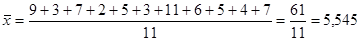 В коллективе работников из 11 человек, ранжированных по целому числу лет стажа работы; стаж работы 6-го работника будет медианой.