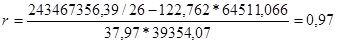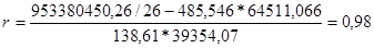 А між ціною реалізації та виручкою коефіцієнт рангової кореляції дорівнює 0,964, і це свідчить про наявність прямого досить високого рівня зв’язку між ними.