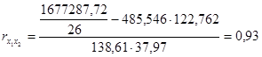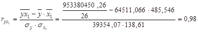Парні коефіцієнти кореляції становлять: ryx1