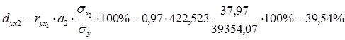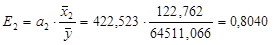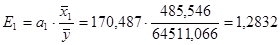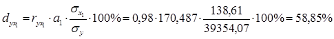 Це означає, що із підвищенням кількості реалізованого молока на 1 тонну, одиниця виручки від реалізації зростає на 170,487 грн. при умові, що друга факторна ознака елімінована, тобто зафіксована на постійному середньому рівні. А із підвищенням ціни реалізації молока на 1грн., одиниця виручки від реалізації зростає на 422,523 грн., при умові, що перша факторна ознака елімінована.