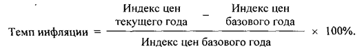 который рассчитывается по отношению к базовому периоду. Темп инфляции можно определить следующим образом: