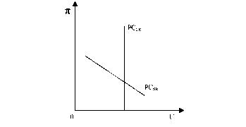 Подавление инфляции сопровождается ростом безработицы. Условия компромисса определяются наклоном кривой Филлипса.[6, с. 123]