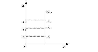 , инфляционные ожидания экономических агентов совпадают с фактической инфляцией в будущем (рис.6). Если правительство пытается применить стимулирующую политику, предприниматели понимают, что увеличился общий уровень цен в стране. Стимулируемый правительством совокупный спрос не вызывает роста совокупного предложения даже в краткосрочном периоде. Экономическая система сразу перемещается из точки А1 в точку А2 и т. д., попытки правительства снизить уровень безработицы не имеют успеха, но сопровождаются ростом цен.