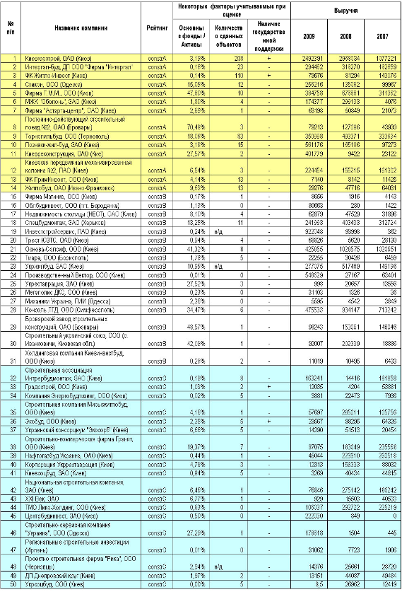 Рейтинг устойчивости строительных компаний Украины по итогам 2009 г.