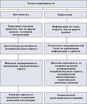 С точки зрения предпринимательской и коммерческой деятельности рынок недвижимости (рис. 1) имеет свои достоинства и недостатки.