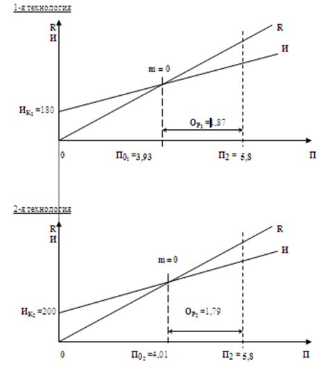 6. Вычислить "прибыльный порог" для каждой технологии, а также операционные рычаги при объемах производства П1