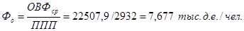 ОВФк - стоимость основных производственных фондов на конец периода, д.е.