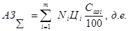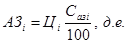АЗі - акцизный сбор с единицы продукции і-го наименования, д.е.