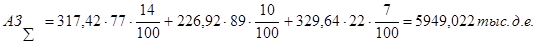 где - общая сумма акцизных сборов, которые выплачивает предприятием, д.е.;