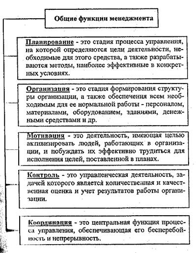Каждый из этих видов нуждался в управлении, предполагавшем осуществлении следующих функций: планирования; организации; координации; контроля; мотивации.