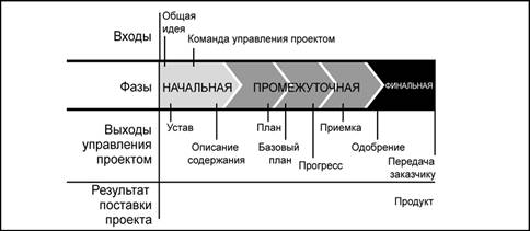 Каждый проект независимо от его сложности и объема работ, необходимых для его выполнения, проходит в своем развитии определенные состояния: от состояния, когда "проекта еще нет", до состояния, когда "проекта уже нет". [1; 236]