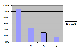В таблице, сверху размещаются столбцы, "определились с выбором профессии" "и не определились с выбором профессии", а слева "1 группа" и "2 группа", где, 1 группа - старшеклассники обучающиеся в профильных классах, а 2 группа - старшеклассники обучающиеся в общеобразовательных классах. Участвуют в сопоставлениях, собственно, только ячейки А и В, то есть процентные доли по столбцу "определились с выбором профессии".