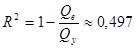Полученный результат для коэффициента детерминации означает, что уравнение регрессии на 49,7% объясняет общий разброс результатов наблюдений относительно горизонтальной прямой .