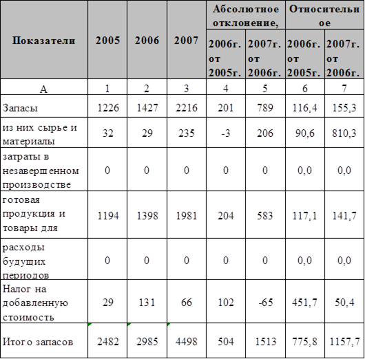 Соотношение стоимости запасов и величин собственных и земных источников их формирования – один из важнейших факторов устойчивости финансового состояния предприятия. Степень обеспеченности запасов источниками формирования следующая, в 2006 году уровень запасов предприятия составил 1458 тыс. руб. темп роста показателя в течение 2007 года составил 157% (2282/1458*100), где величина запасов составила 2282 тыс. руб.