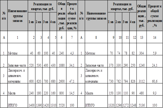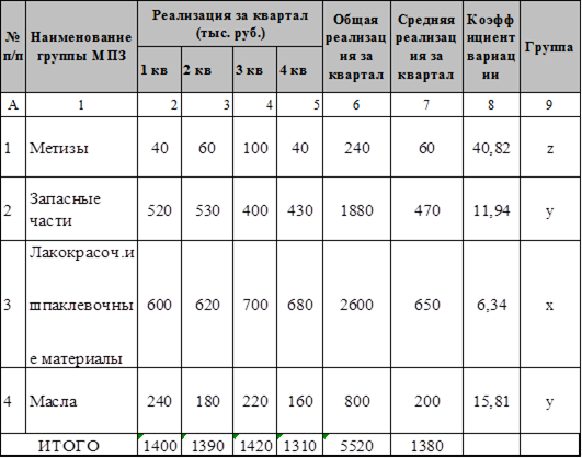 Результаты проведенного анализа XYZ показали, что на предприятии можно четко выявить абсолютное и относительное значение запасов для производственной программы предприятия в перспективе. Метод XYZ позволяет выстроить групповые позиции в зависимости от величины спроса на материалы, и определить, какие МПЗ являются наиболее выгодными, а какие нежелательны в ассортименте. С этой точки зрения для материалов класса X (лакокрасочные и шпаклевочные материалы) можно рекомендовать закупки в соответствии с плановой потребностью синхронному их расходу в производстве, для класса Y (запасные части и масла) – создание запасов, а для класса Z (метизы) – приобретение по мере возникновения потребности.