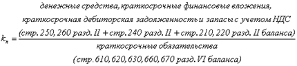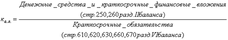 может быть погашена немедленно, и рассчитывается как отношение наиболее ликвидных оборотных активов